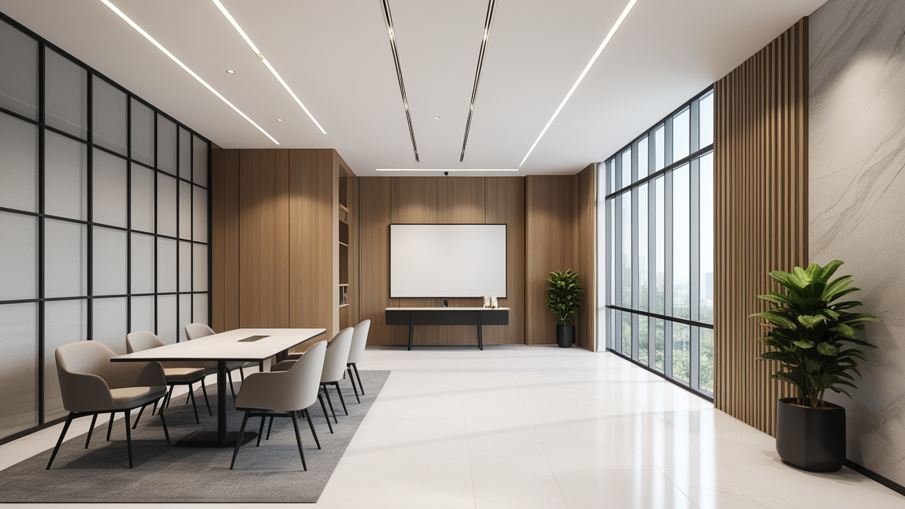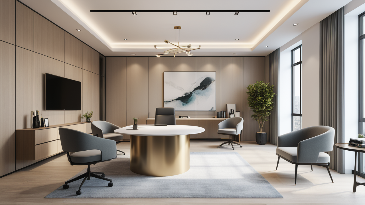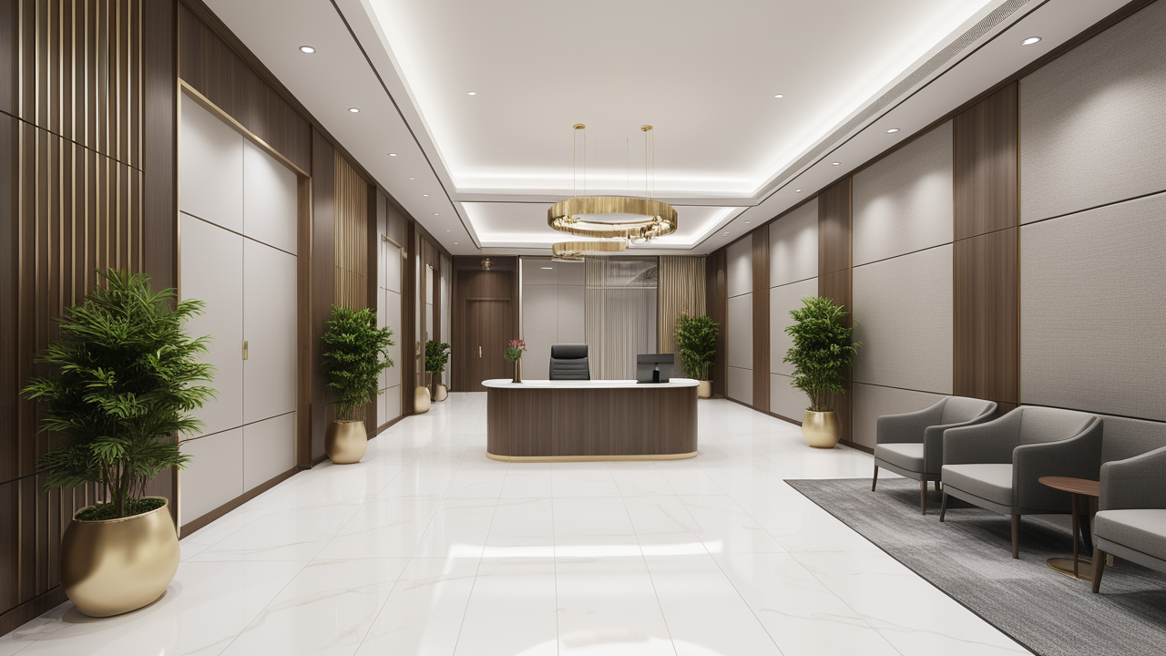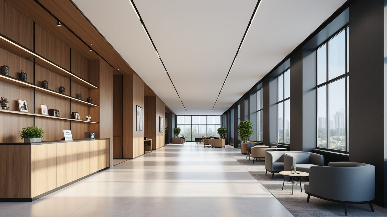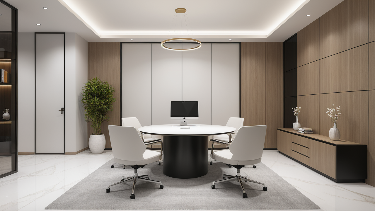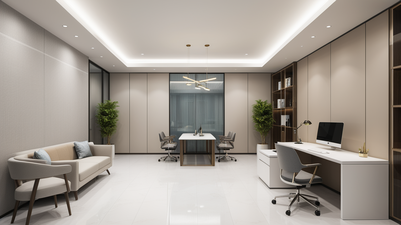 本案圍繞其“靈透”,大量使用了玻璃、銀色系列及淺色調(diào)的潔凈材料,如玻璃幕墻、銀質(zhì)鋁塑板、水晶白麻石材、玻化磚等,圍繞本案主題,構(gòu)筑個(gè)性化空間,該色彩搭配除了清透、雅致、穩(wěn)重、大氣之外,亦表現(xiàn)出一種力度感和效率感。滲透入貴機(jī)械制造企業(yè)之“清透感”,亦反襯企業(yè)之“柔美感”。以似乎矛盾的手法,又體現(xiàn)出古人之哲理“剛之極則柔,柔之極則剛”。老子說“上善若水”,該案則就其“善”滲透到每一個(gè)空間,極盡讓每個(gè)功能區(qū)都具有清透之靈性,盡顯靈動(dòng)、清澈、時(shí)尚、大氣之空間氣韻。
