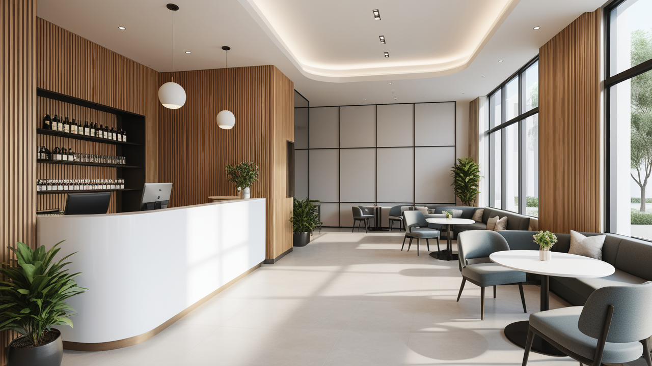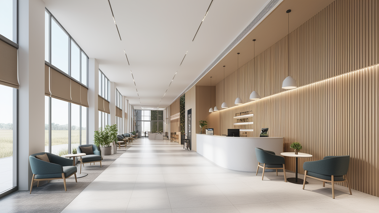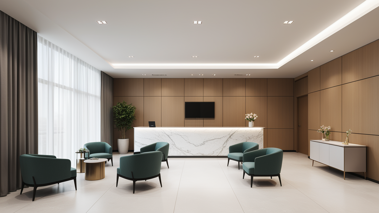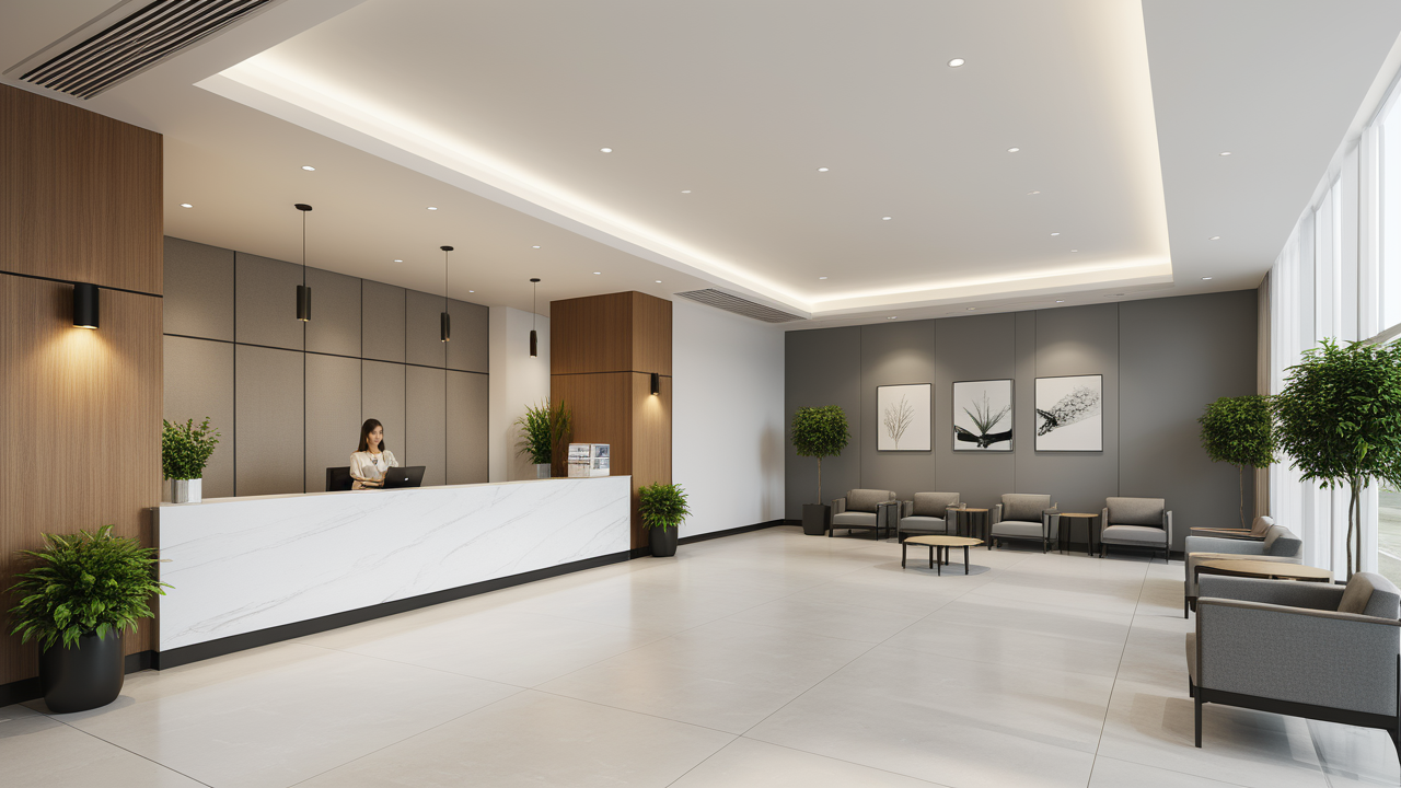 本案在這個辦公室設計中,甲方要求,有功能區設置,有總經理,總經理是本公司中最高的職務,所以在我的設計中給他選擇了一個比較好的朝向,采光比較好、地面采用仿古顯紋復合強化淺色木地板。防滑耐磨。幾何式的辦公桌莊嚴不失人性化。自然的美巧妙的運用到設計之中,突顯對美好生活的向往。放松工作時的狀態,副總經理兩間,裝修風格跟總經理相符,比較統一。會議室,在平面功能上??紤]了合理的行動路線,東面墻對應窗的位置設計了落地的玉砂玻璃隔墻,以滿足展示區的采光要求。