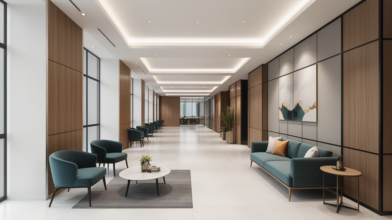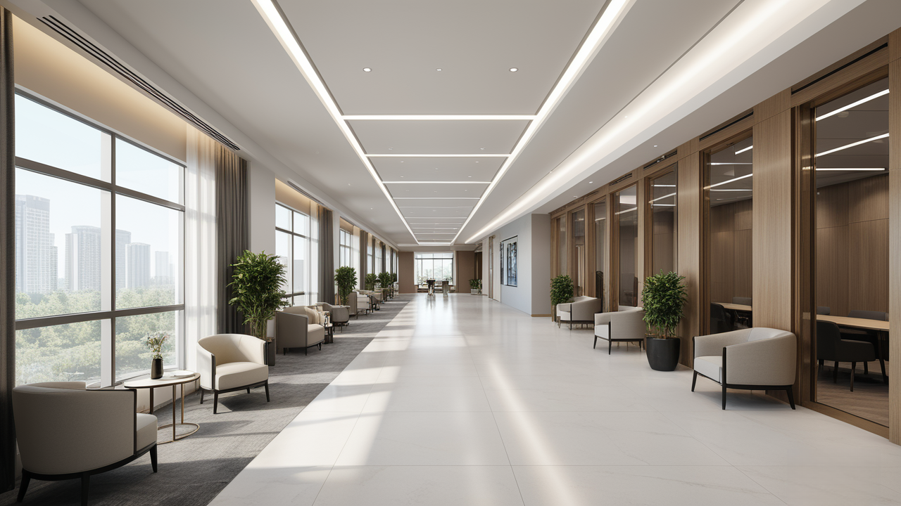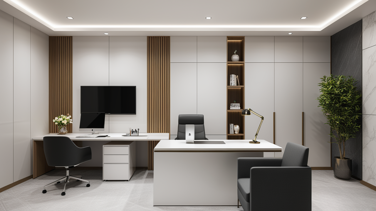 本案屬于簡(jiǎn)約的風(fēng)格,簡(jiǎn)單而有品位,色調(diào)冷暖結(jié)合。辦公環(huán)境的風(fēng)格取向、舒適與否對(duì)于提升員工的工作效率和體現(xiàn)企業(yè)文化起到至關(guān)重要的作用。辦公室整體色調(diào)采用藍(lán)灰調(diào),使員工辦公的心情能夠沉靜下來,工作效率自然可以得到提高。有一位建筑大師曾說過:“當(dāng)綠化、光和風(fēng)根據(jù)人的意念從原先自然中抽象出來,它們就趨向天堂”。我們?cè)谑覂?nèi)引入天光設(shè)置了自然植物,將室外的感覺引入室內(nèi)空間,使辦公環(huán)境更具活力。