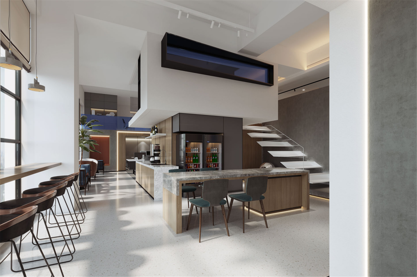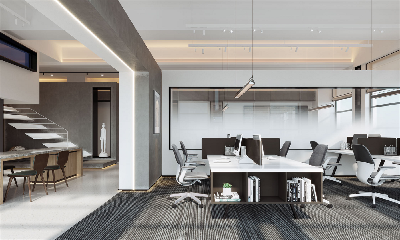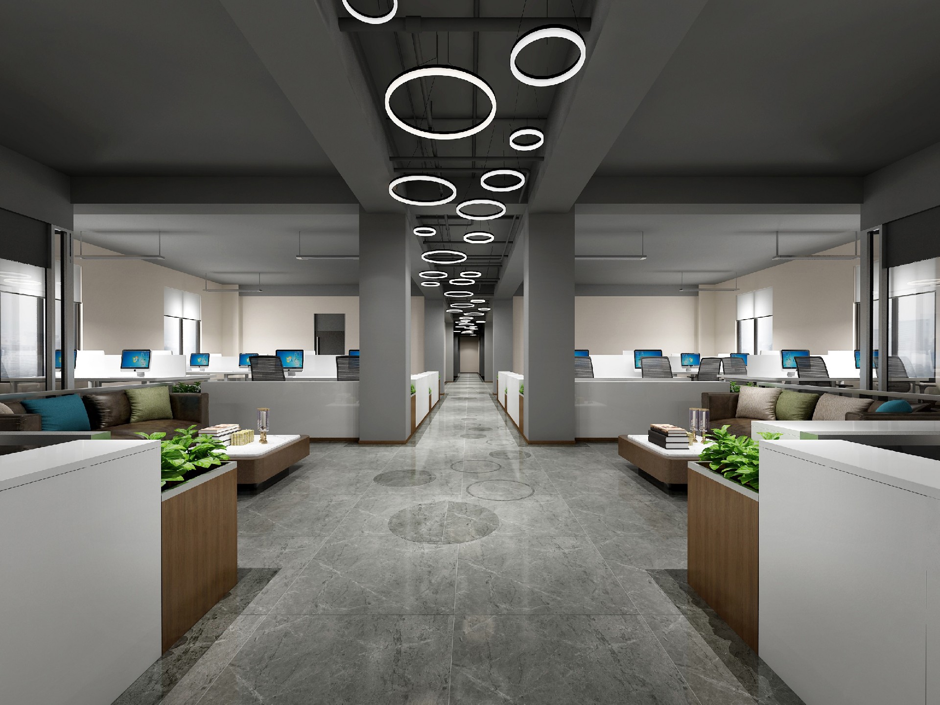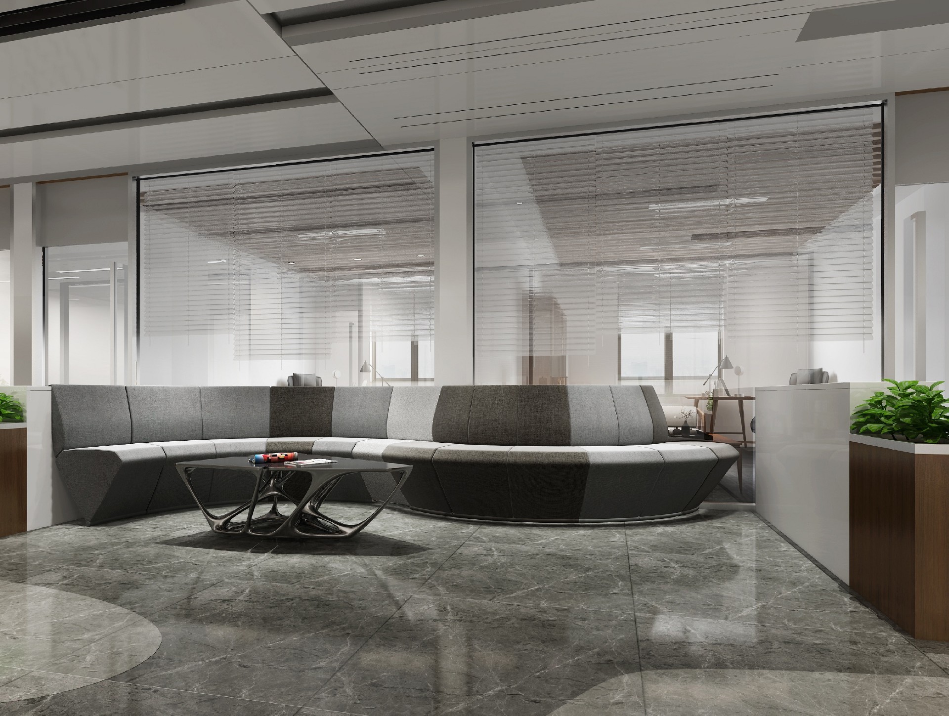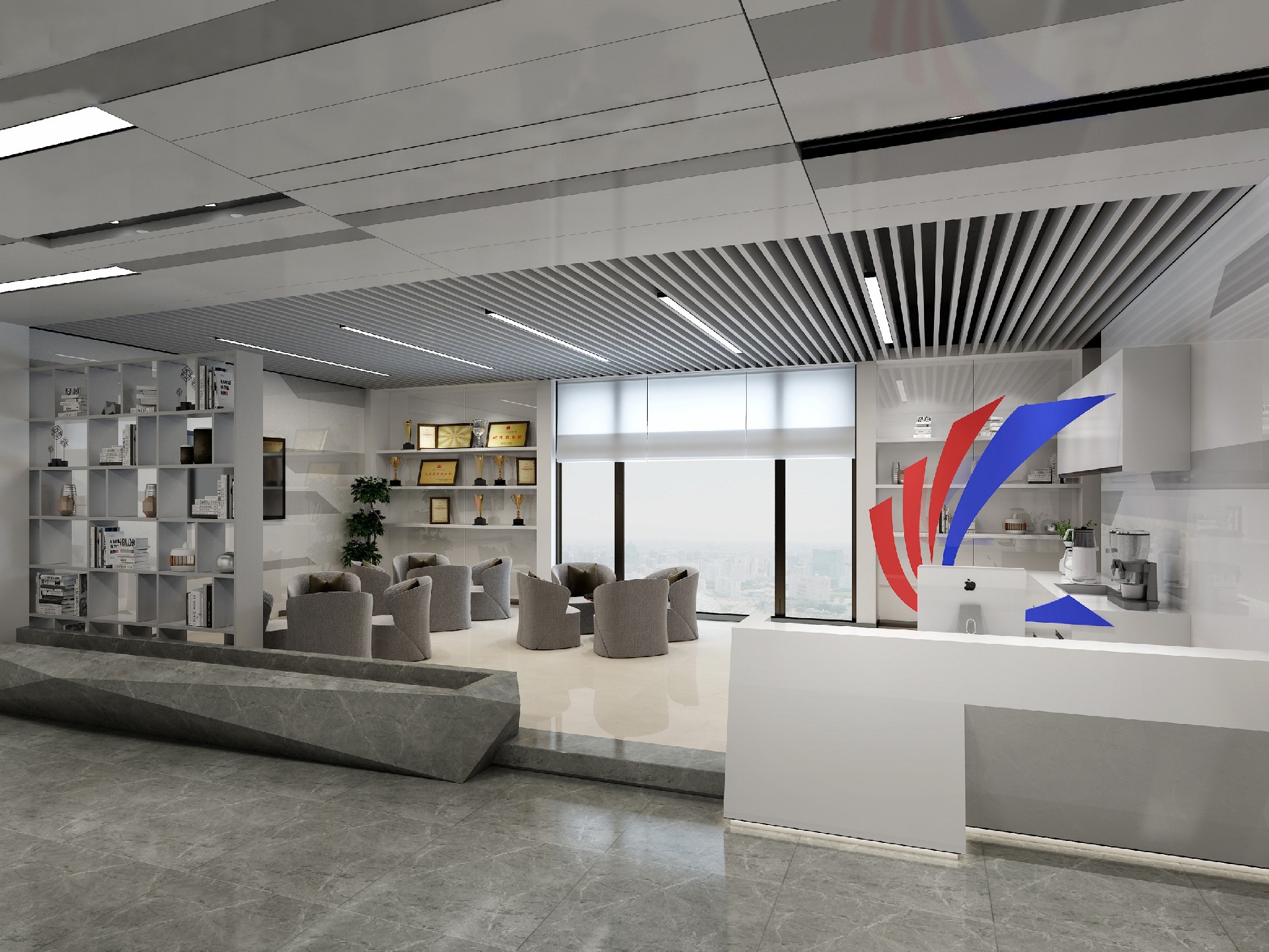 本案圍繞其“靈透”,大量使用了玻璃、銀色系列及淺色調的潔凈材料,如玻璃幕墻、銀質鋁塑板、水晶白麻石材、玻化磚等,圍繞本案主題,構筑個性化空間,該色彩搭配除了清透、雅致、穩重、大氣之外,亦表現出一種力度感和效率感。滲透入貴機械制造企業之“清透感”,亦反襯企業之“柔美感”。以似乎矛盾的手法,又體現出古人之哲理“剛之極則柔,柔之極則剛”。老子說“上善若水”,該案則就其“善”滲透到每一個空間,極盡讓每個功能區都具有清透之靈性,盡顯靈動、清澈、時尚、大氣之空間氣韻。