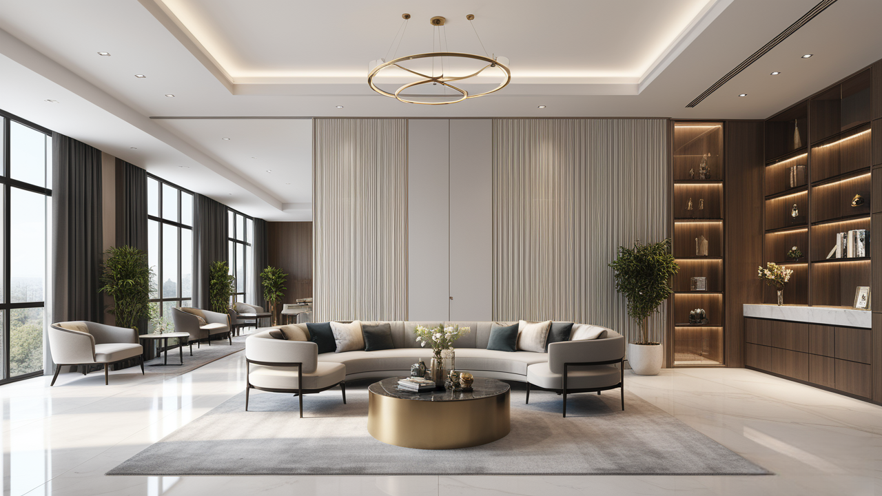 本案設(shè)計(jì)主題 “靈透之材,蓬勃之勢(shì)”為主題,本案就其“鋼之靈透”,用象征化的表現(xiàn)手法,多元化的設(shè)計(jì)元素,力求整體風(fēng)格與整棟大樓協(xié)調(diào)、清新、大氣的外觀設(shè)計(jì)保持一致,企業(yè)氣質(zhì)內(nèi)外渾然一體,展現(xiàn)出富有深刻內(nèi)涵的視覺空間及該企業(yè)獨(dú)特的個(gè)性與特點(diǎn),將復(fù)蘇這一時(shí)代特性滲透于整個(gè)空間,既突顯造企業(yè)特質(zhì),又蘊(yùn)涵公司新興而極具沖擊力的蓬勃發(fā)展之勢(shì)!
